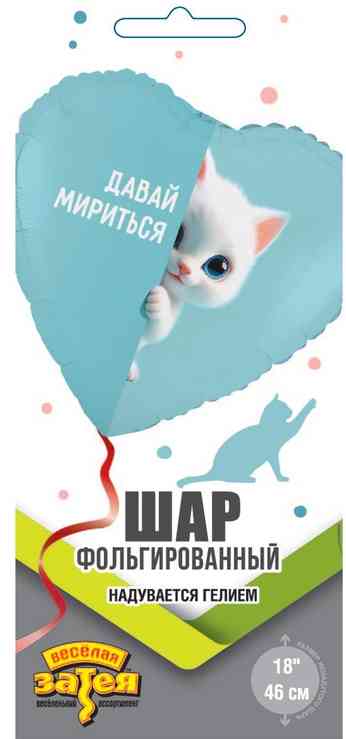 Шар фольга с рисунком 18"ВЗ сердце Давай мириться Котенок белый