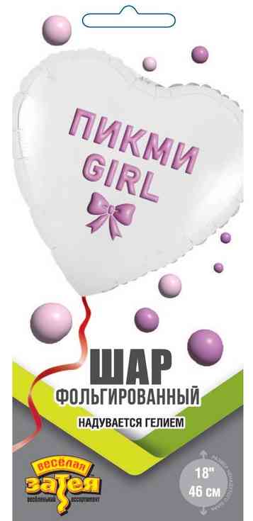 Шар фольга с рисунком 18"ВЗ сердце Пикми GIRL