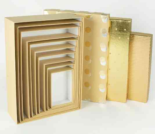 Коробка Прямоугольник 24х17х7см Нежный микс Бежевый Золото металлик ДБ