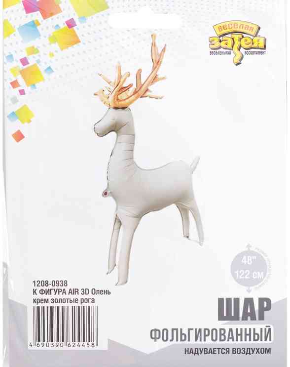 Шар фольга фигура AIR Олень кремовый Золотые рога 48" 122смВЗ (упак)
