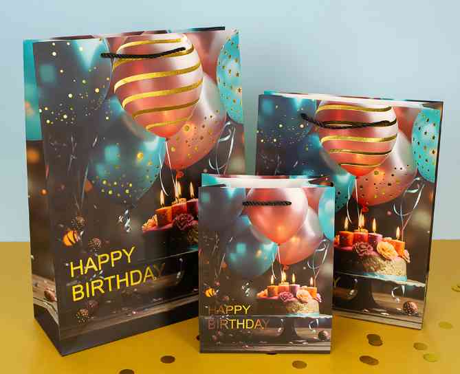 Пакет бумажный L 26х32см Фееричный день рождения Дизайн №2