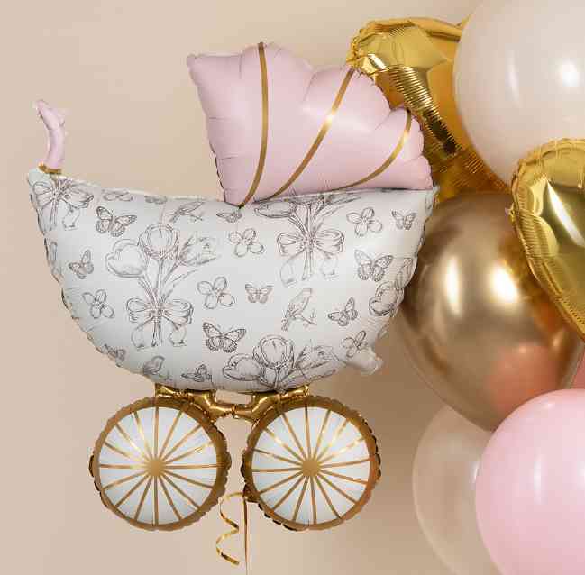 Шар фольга фигура Коляска Ретро Розовый Сатин 36" 91смFL
