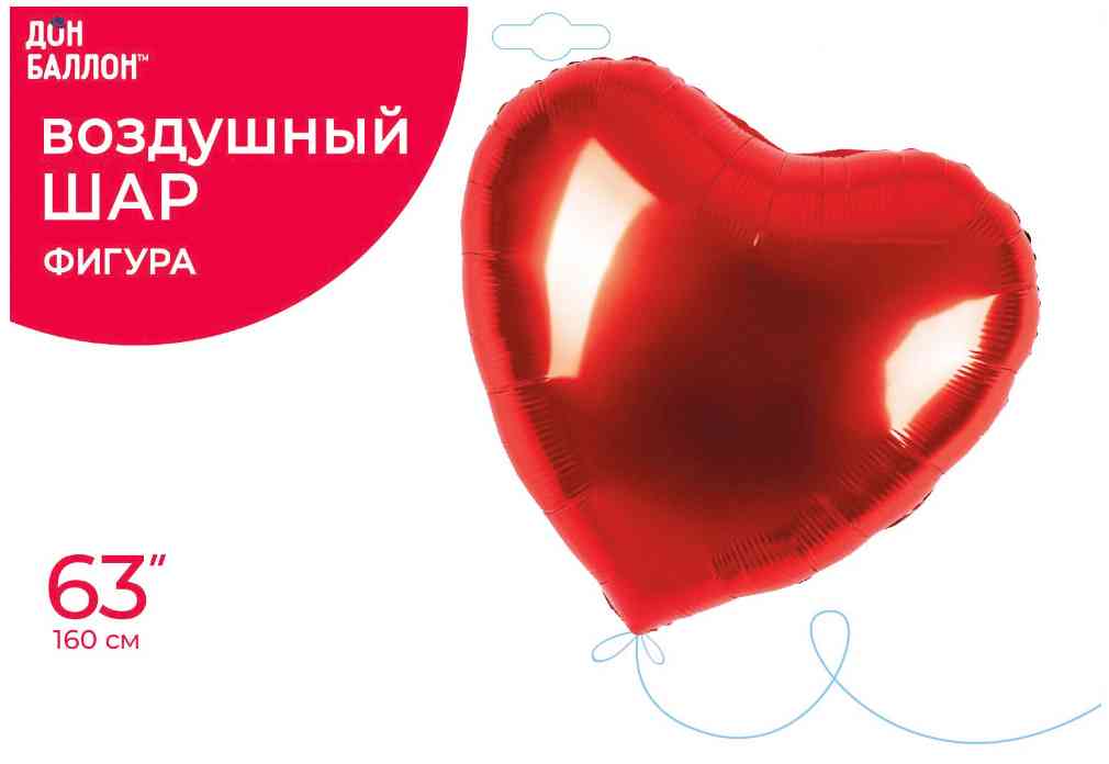 Шар фольга без рисунка 63"FL сердце Металлик Красный