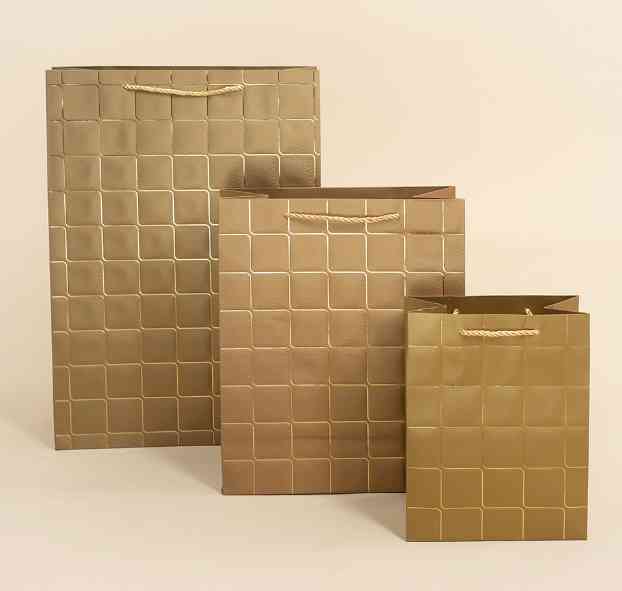 Пакет бумажный M 18х23см Золотые квадраты Дизайн №5 Золото