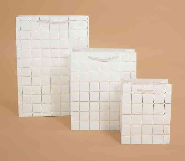 Пакет бумажный M 18х23см Золотые квадраты Дизайн №3 Белый