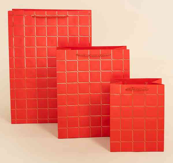 Пакет бумажный M 18х23см Золотые квадраты Дизайн №2 Красный