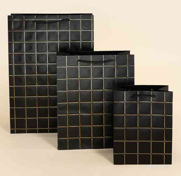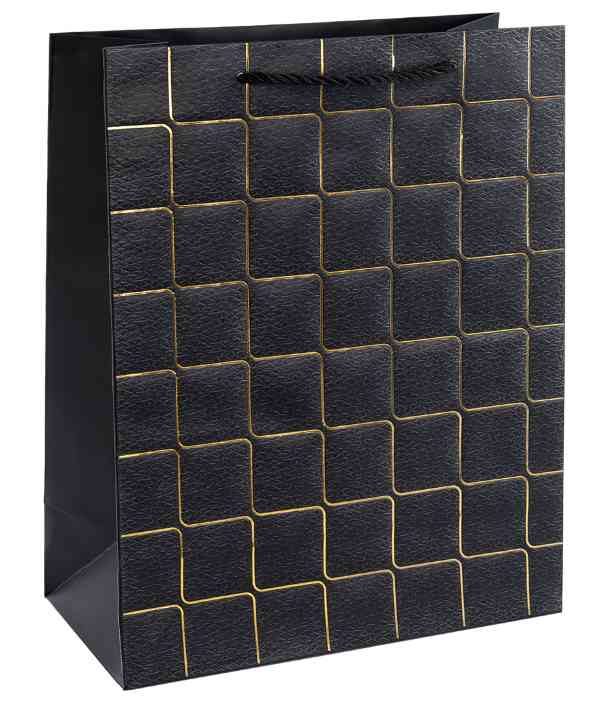 Пакет бумажный M 18х23см Золотые квадраты Дизайн №1 Черный
