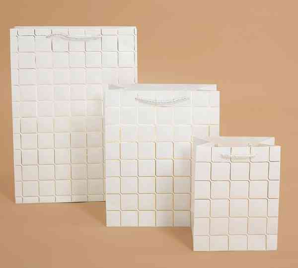 Пакет бумажный L 26х32см Золотые квадраты Дизайн №3 Белый