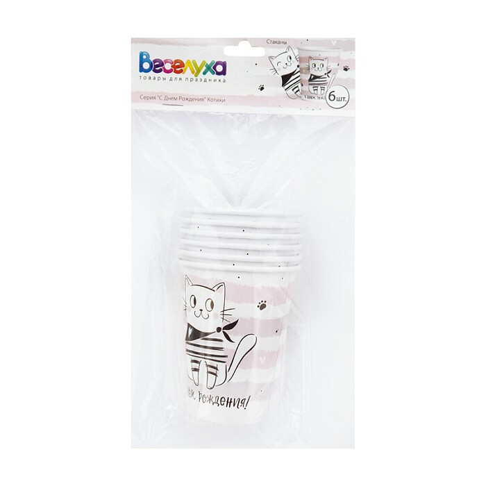 Стаканы бумага 250мл С Днем Рождения Котики (уп6) Россия
